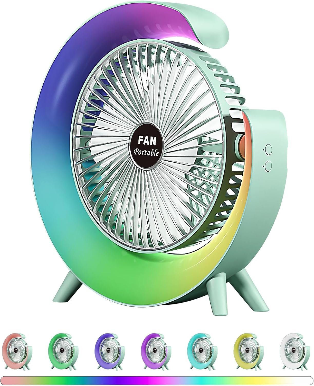 The Colorful Desktop Fan combines quiet cooling with modern design, making it perfect for bedrooms, offices, and study spaces. With USB recharging, LED ambient lights, and adjustable airflow, it offers both comfort and style. Compact yet powerful, this fan is ideal for work, rest, or travel.